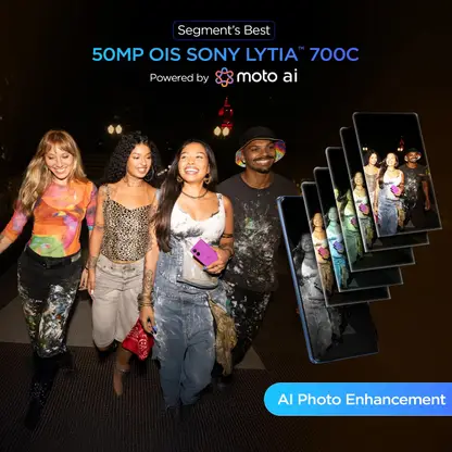 All Eyes On You' only with the moto g96 5G's segment's best and most advanced 50MP OIS Sony-LYTIA 700C sensor paired with advanced moto ai features like 'AI Photo Enhancement', 'Horizon Lock', and Digital Zoom to elevate your professional photography experience and make every shot memorable. Additionally, enjoy the Segment's only phone with '4K video recording' from all lenses. With its 3-in-1 8MP secondary cameras for wide angle, macro, and depth sensors supporting 4K video recording for the first time in the 32MP Selfie camera with 4K Video recording makes the photography and videography experience even more incredible. Enjoy consistent clarity with the advanced camera system that's equipped with Optical Image Stabilisation (OIS) for capturing clear images and videos while in motion. Capture every moment clearly, be it daylight or night light.