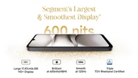 Get an expansive 17.47 cm (6.88) HD+ display with this Redmi smartphone. With 600-nits brightness and a smooth 120 Hz refresh rate, every scroll, swipe, and stream becomes vividly immersive. Plus. it is certified by TUV Rheinland.